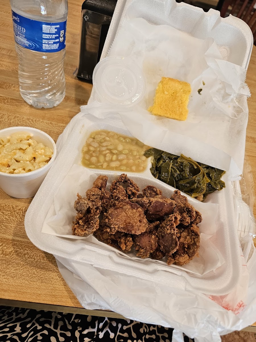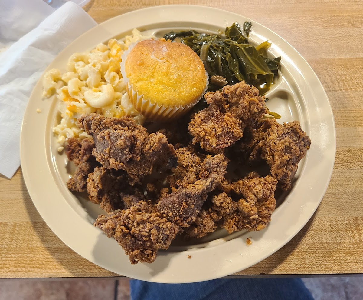 TOP TIER SERVICE… this small family owned business gives a cozy “grandma’s house on Sunday” vibe… the facility is very CLEAN and the staff are super FRIENDLY. I had the smothered chops and smothered gizzards and they were amazing… seasoned well… everything FRESH and the tea is a MUST HAVE!