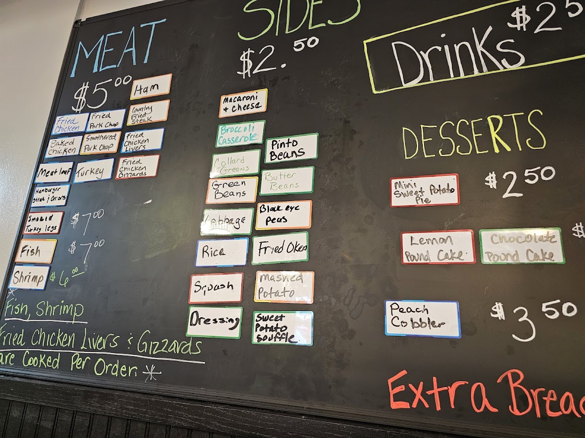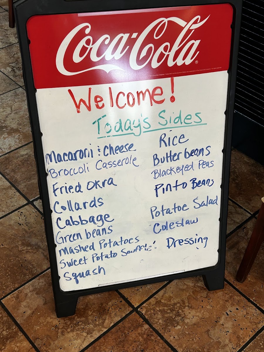 The selection of sides changes daily, featuring comforting options such as collards, macaroni and cheese, fried okra, and butter beans. These pair nicely with made-to-order main courses, offering a balanced, flavorful experience. Sweet treats like their homemade peach cobbler provide a gentle finish to the meal, adding a touch of simple sweetness to round out the experience.